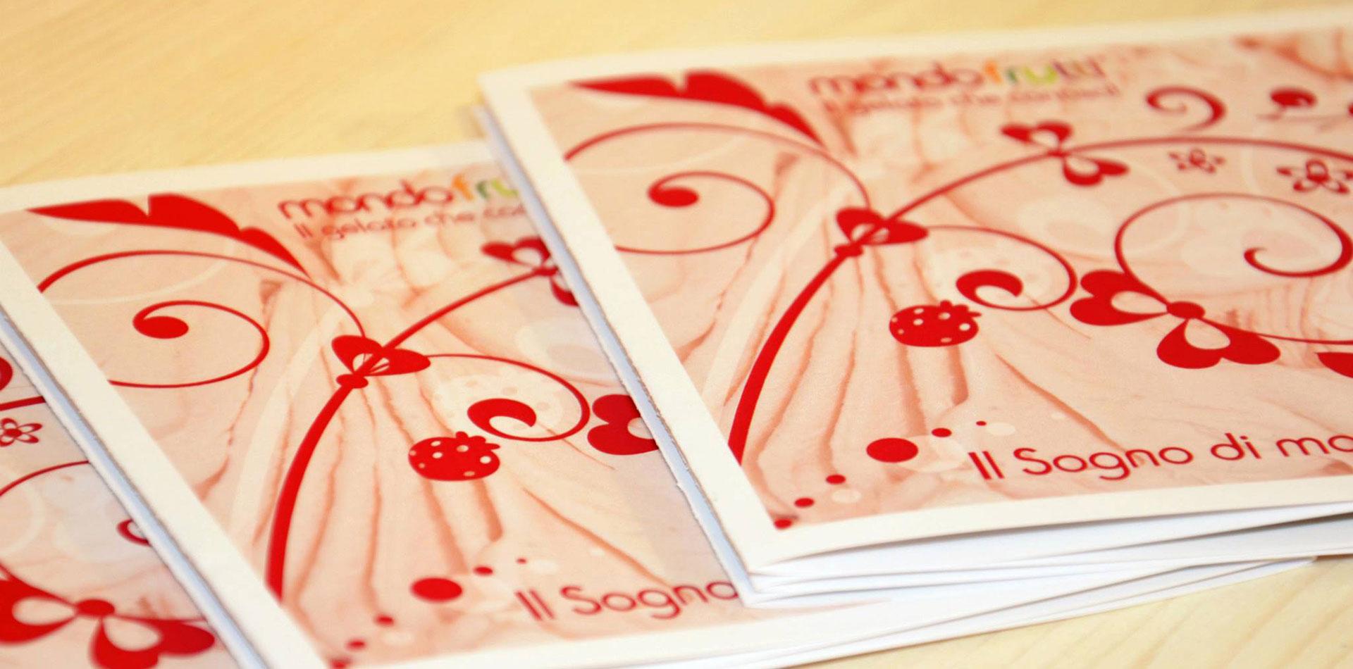 Mondofrutti è un'azienda trentina che si occupa della produzione e della vendita di gelati e prodotti a base di frutta. L'identità visiva di Mondofrutti è colorata: i colori della frutta assumono toni più decisi nei logo e nei materiali stampati, toni più tenui nell'allestimento degli interni, dove si è prediletto l'uso del legno. Le fotografie della frutta sono sempre presenti, sia nelle gelaterie, sia nei materiali promozionali.
